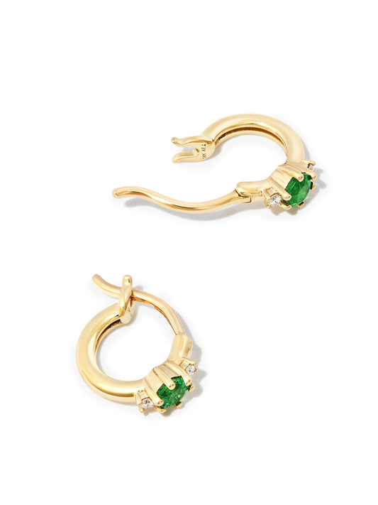 14kt yellow gold emerald diamond huggie hoop earrings