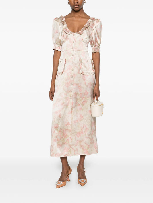ruffled floral-print silk midi dress