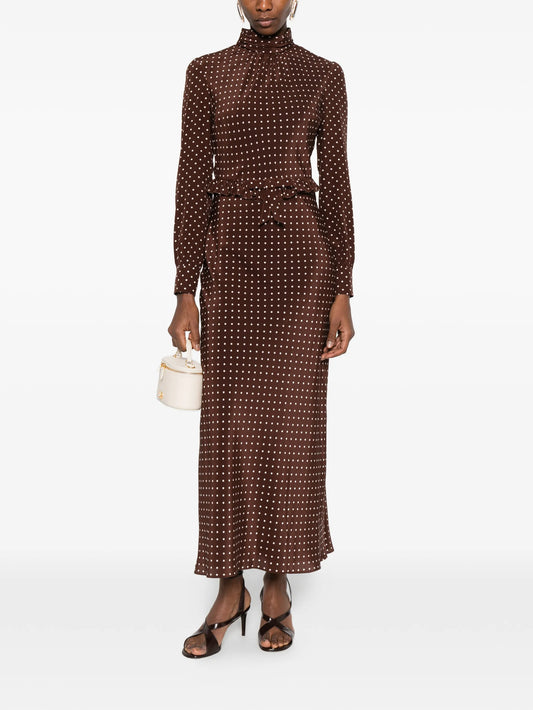 polka dot print high-neck midi dress