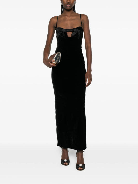 bow-detail velvet gown