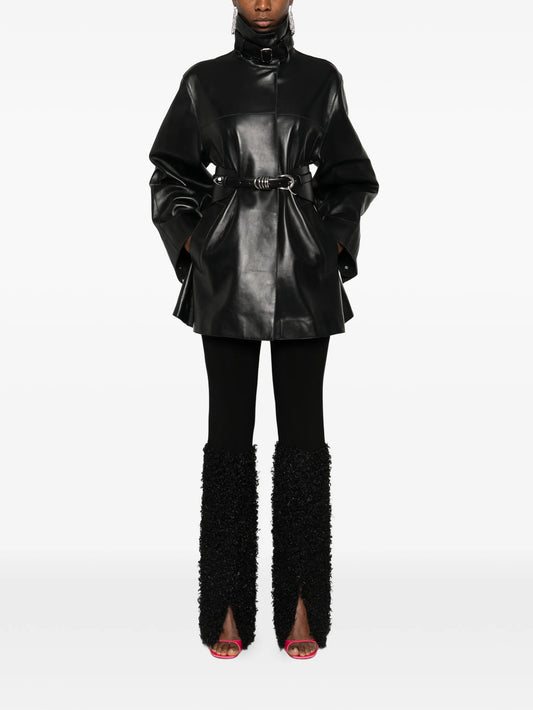 Yava belted leather coat