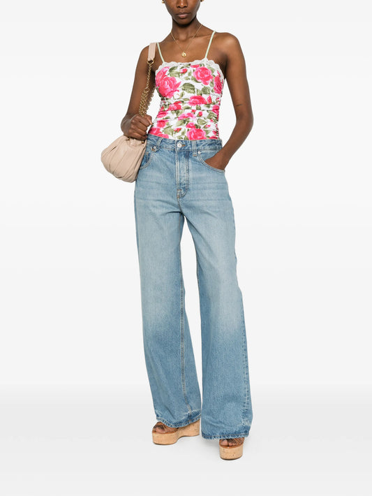 aqua flower-print one-piece swimsuit
