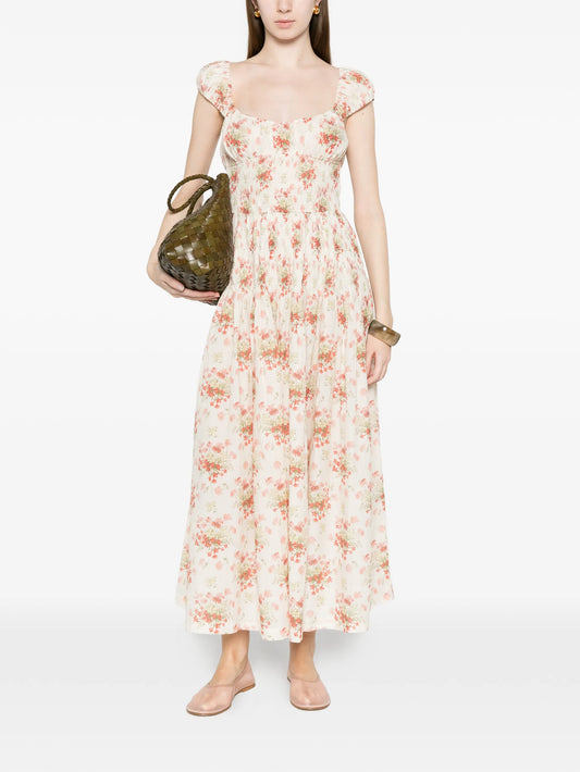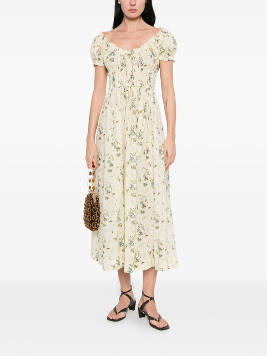 Quinette square-neck flower-print midi dress