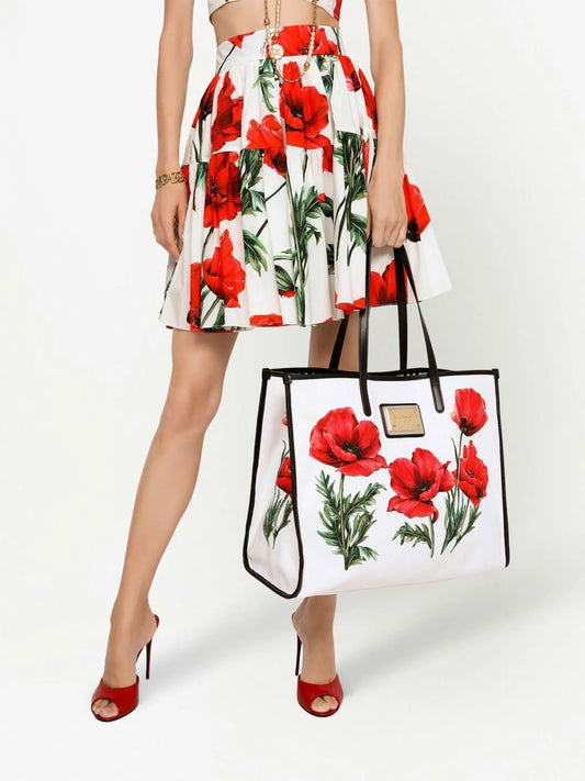 poppy-print canvas tote bag