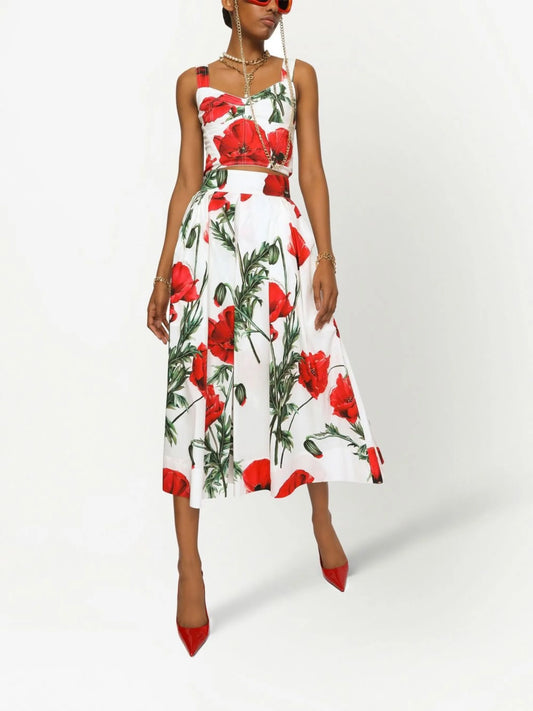 poppy-print high-waisted skirt