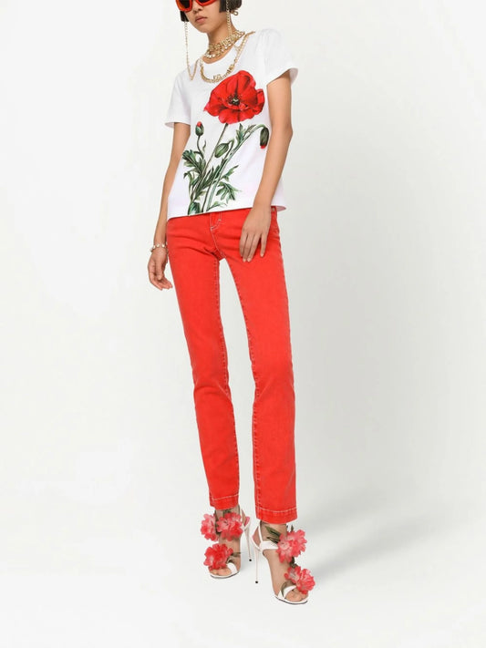 poppy-print cotton T-shirt