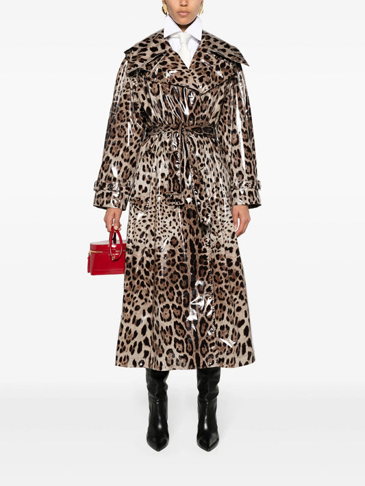 leopard-print belted trench coat