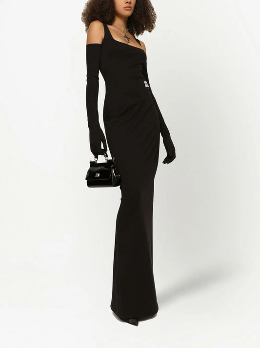 KIM DOLCE&GABBANA number patch off-shoulder dress