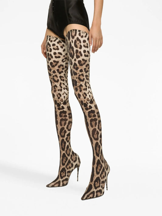 KIM DOLCE&GABBANA leopard-print thigh-high boots