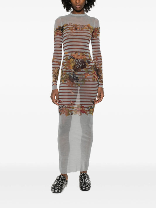 long-sleeves morphing-stripes maxi dress