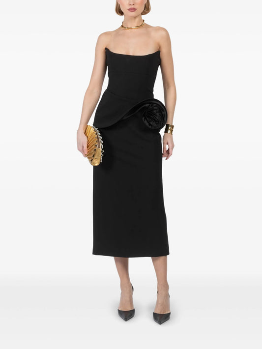 floral-appliqué bustier midi dress