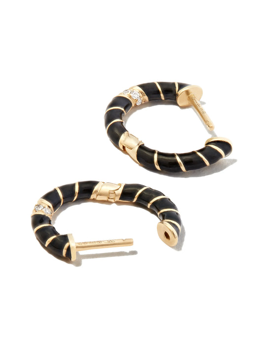 9kt yellow gold enamel diamond hoop earrings