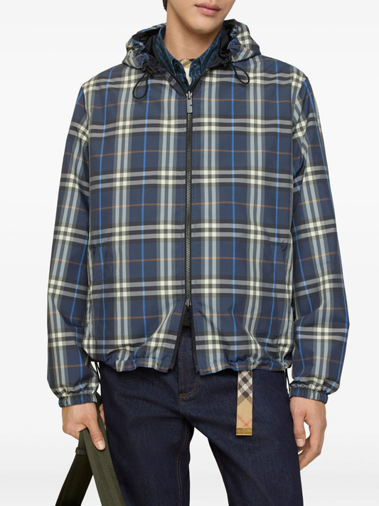 check-pattern hooded reversible jacket