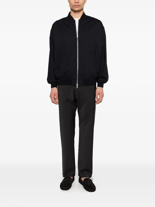 pinstripe zip-up bomber jacket