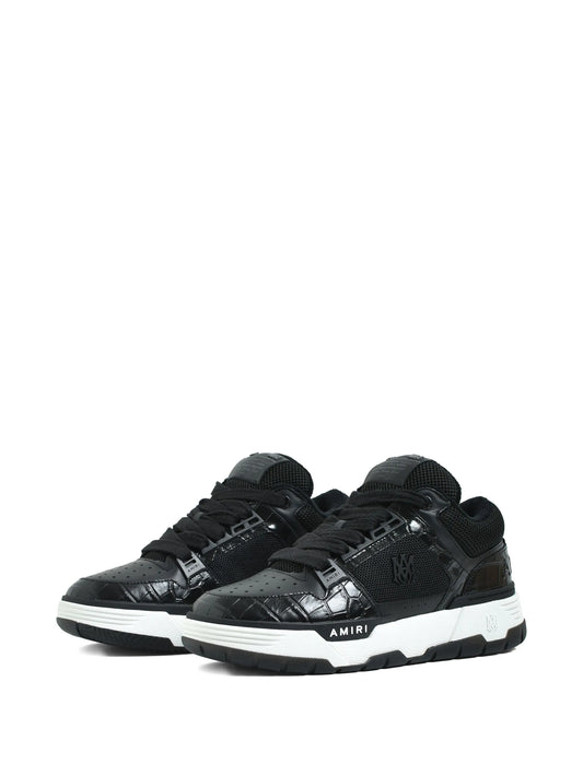 crocodile-effect mesh lace-up sneakers