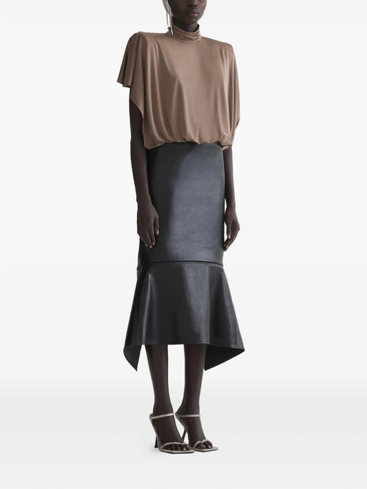 draped high-neck dress