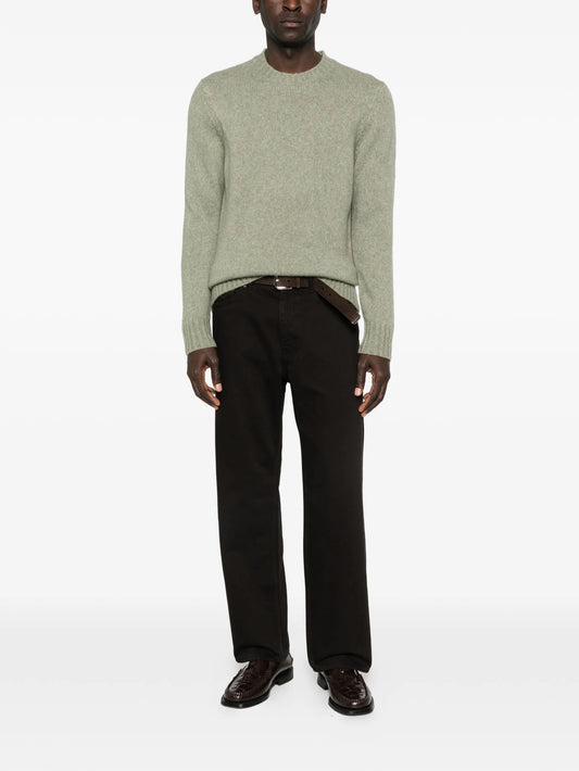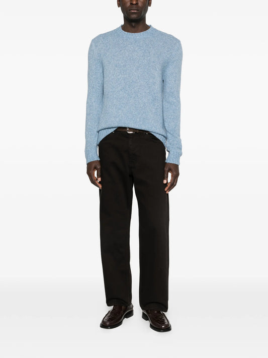 Relaxed-fit crew neck sweater crafted from a medium-weight woolen blend for a soft, textured hand feel.