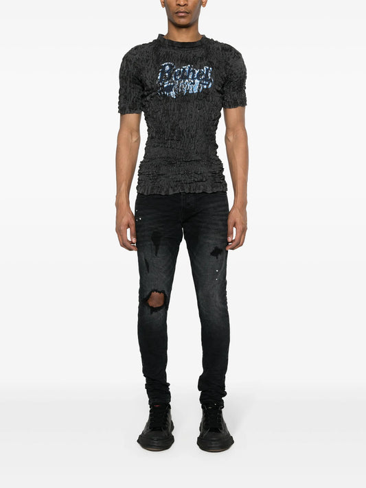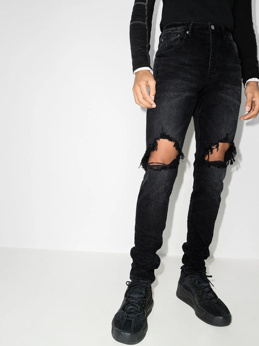 low-rise "Black Wash Blowout" slim jeans