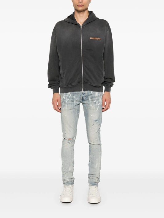 distressed-finish slim fit jeans