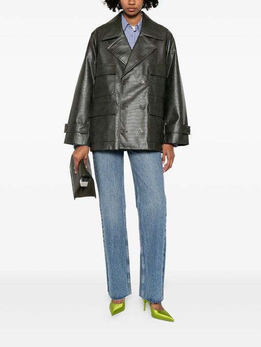 faux-leather double-breasted jacket