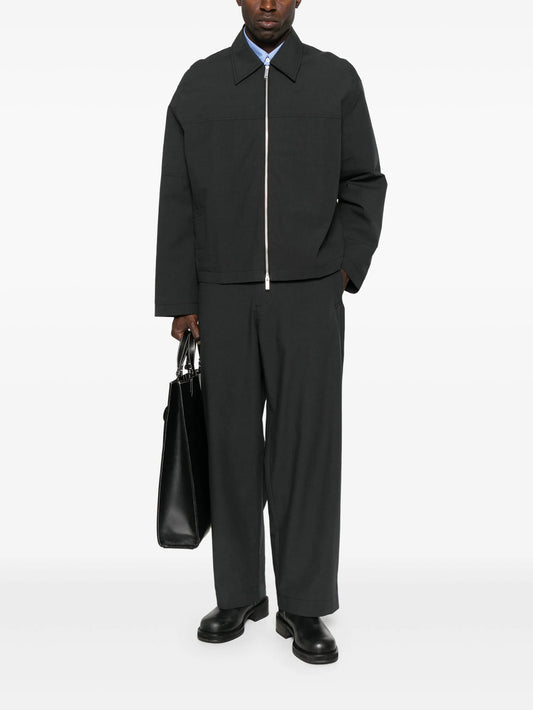 contrast-collar zip-up jacket