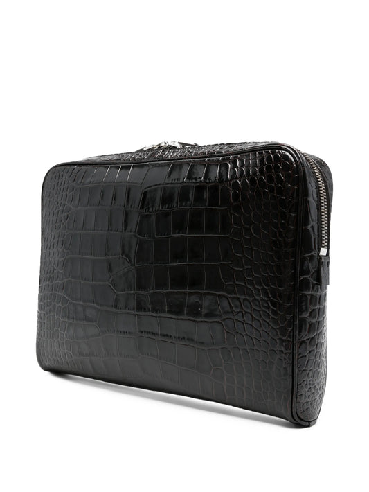 croc-effect logo-detail laptop bag