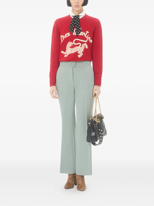 V-detail wool crepe trousers