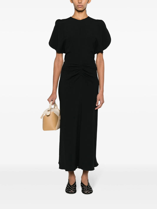 ruched-waist crepe midi dress
