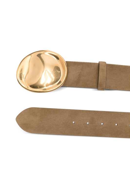 oval-buckle suede belt