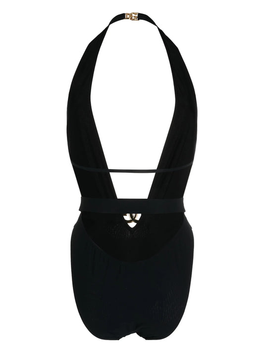logo-plaque plunge swimsuit