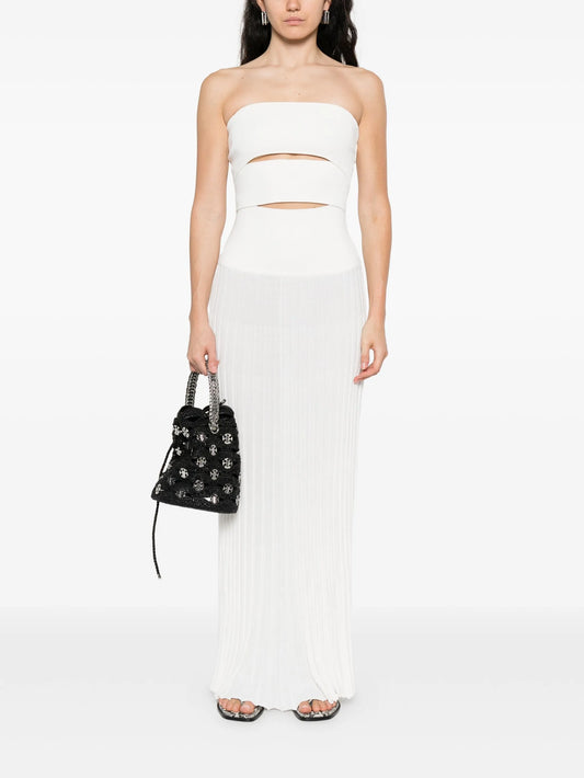 pleated strapless dress