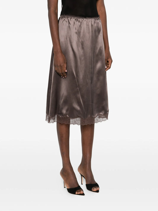 lace-trimmed satin skirt