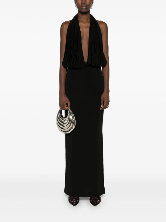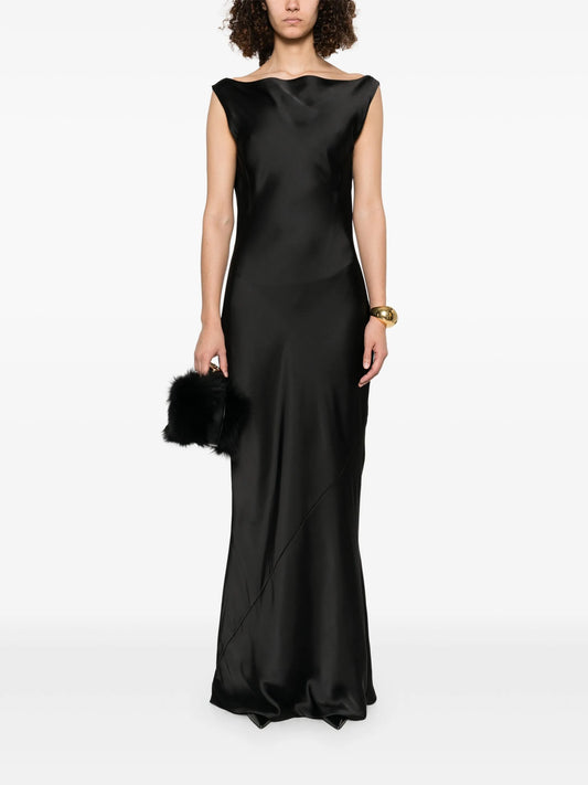 draped sleeveless gown
