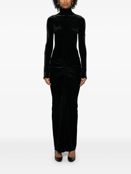 velvet draped maxi dress