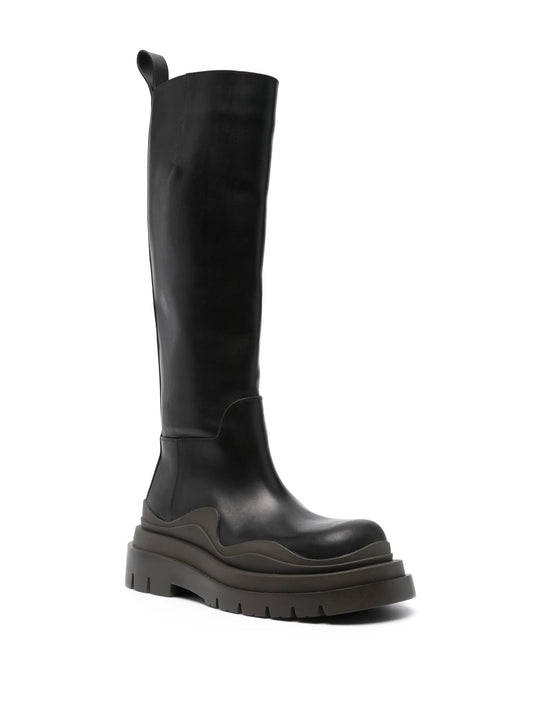 patent-leather knee-high boots