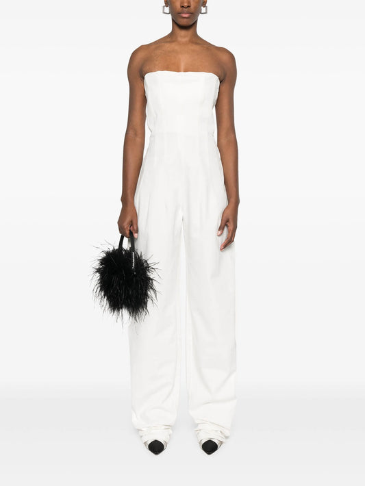 Taree feather-trim strapless jumpsuit