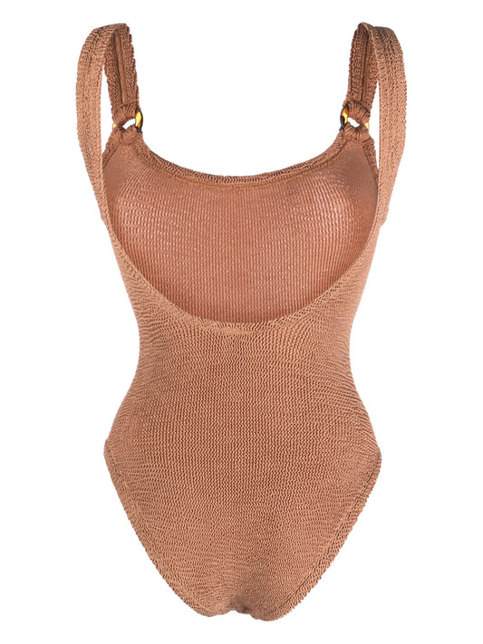 Domino scoop-neck crinkled swimsuit