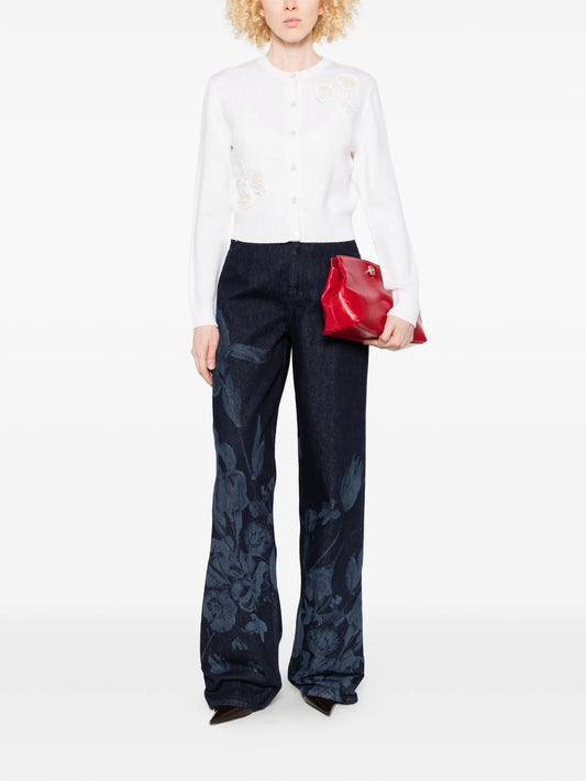 floral-embellished crew-neck cardigan