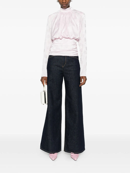 floral-jacquard long-sleeve blouse