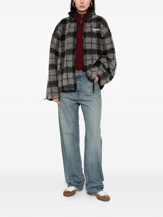 plaid-pattern zip-fastening sweatshirt