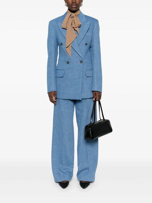 pinstriped tailored straight trousers