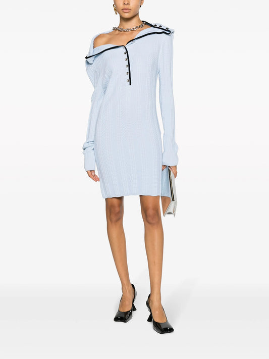 ruffle-collar merino wool minidress