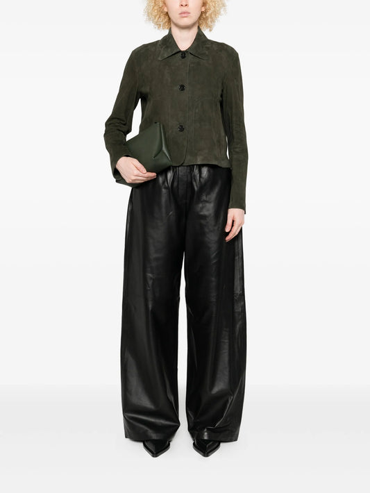padded-shoulder buttoned denim jacket