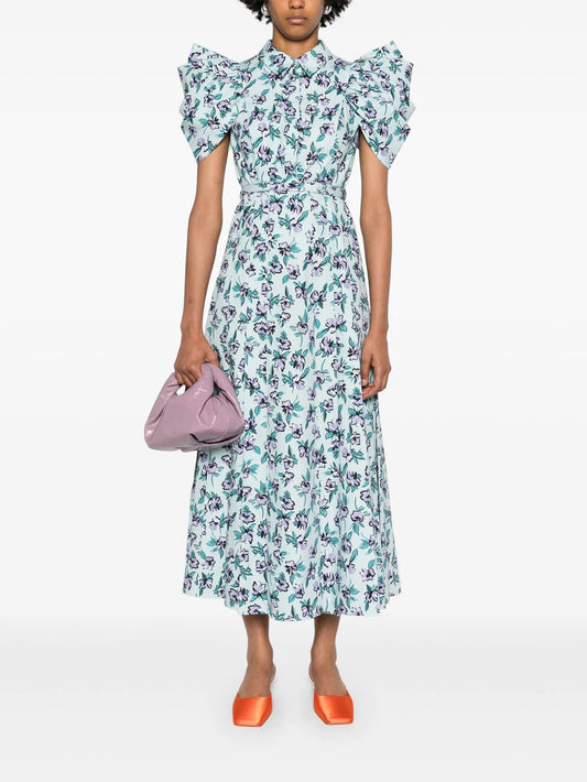 floral-print pleated midi dress