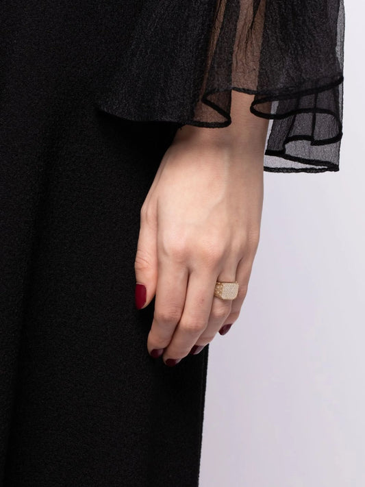 9K yellow gold check-pattern diamond-embellishment ring