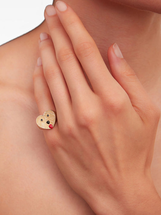 9K yellow gold dog-embellishment diamond-embellishment ring