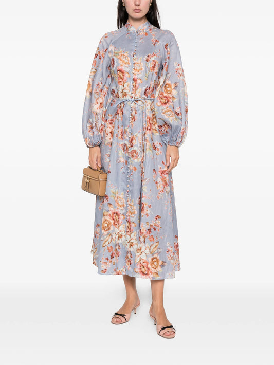 Awaken billow-sleeve floral midi dress