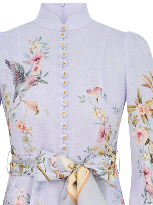 high-neck paisley silk dress