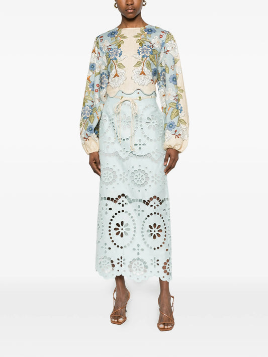 Awaken embroidered midi skirt