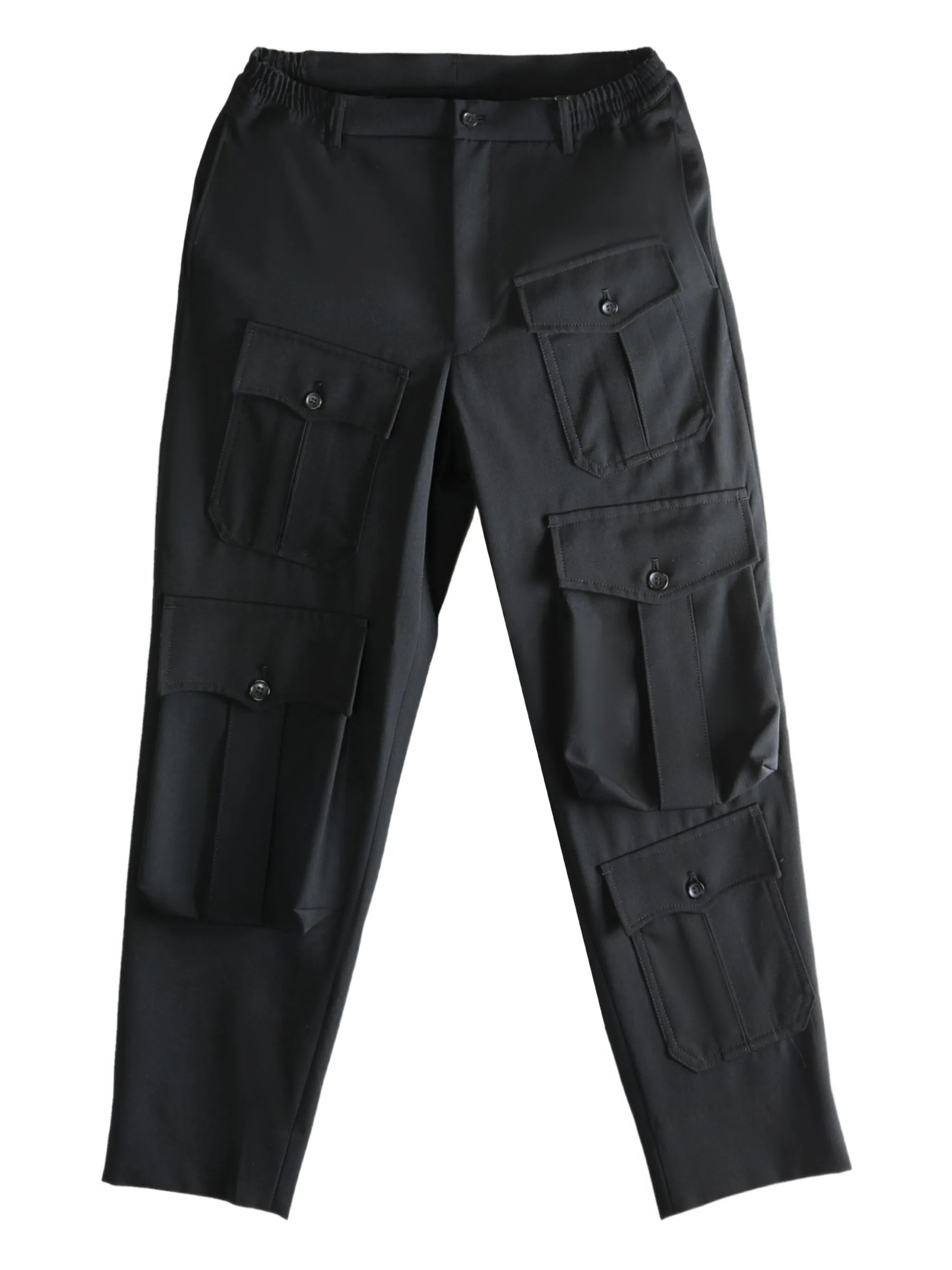 multiple-pocket wool trousers